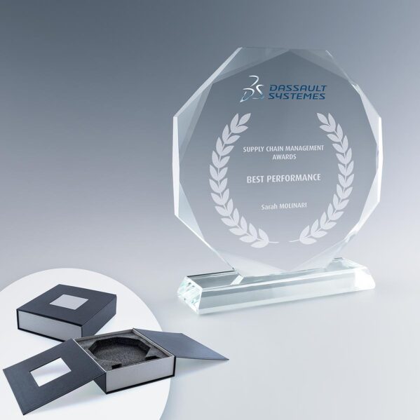 - Trophée en verre sur pied.